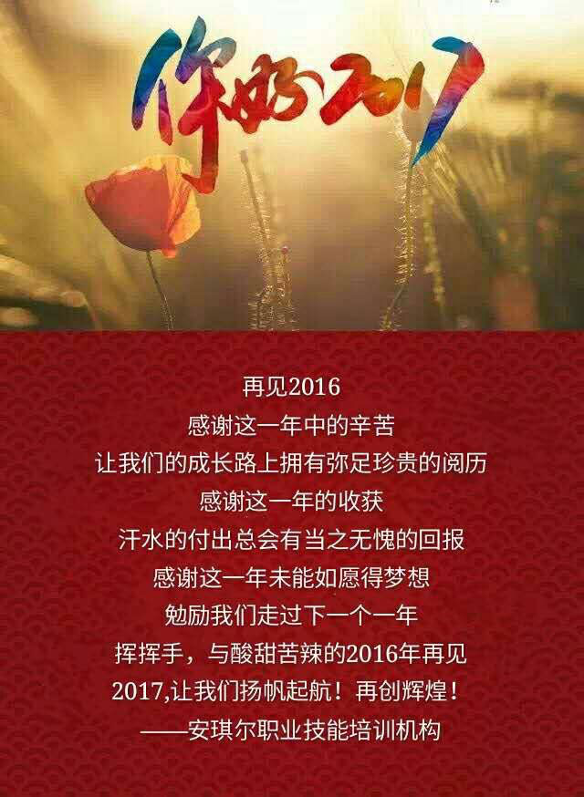 安琪尔祝大家在新的一年里:喜鹊登枝贺佳节,傲雪红梅把春闹。天涯海角同聚首,团团圆圆皆欢笑。腊尽春归新万象,紫燕衔泥筑家巢。美满幸福浴春风,鸡年更上一层楼。